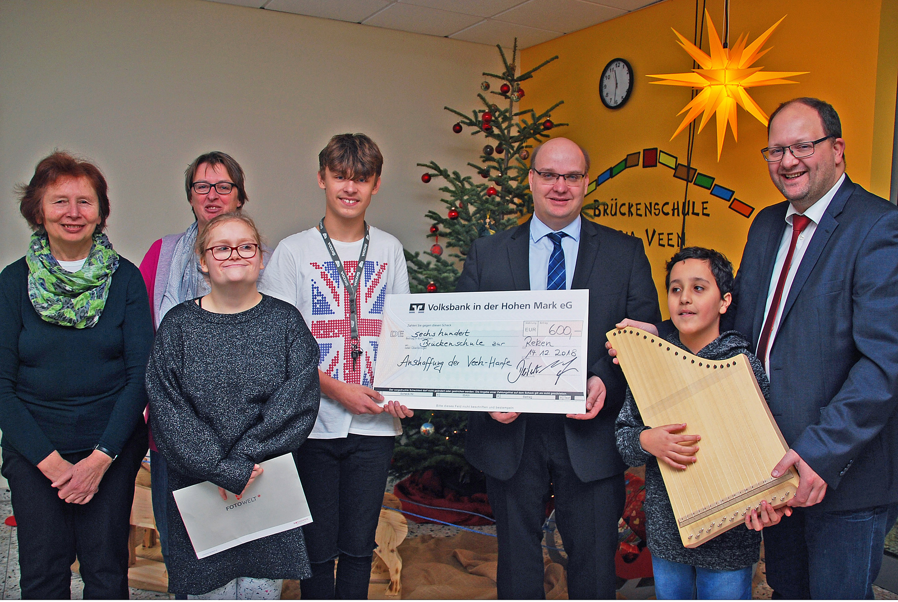 14.12.2018 - Eine großzügige Spende ermöglicht die Anschaffung einer Veehharfe für die Brückenschüler:innen. In einer AG machten einige Schüler:innen bereits Erfahrungen.